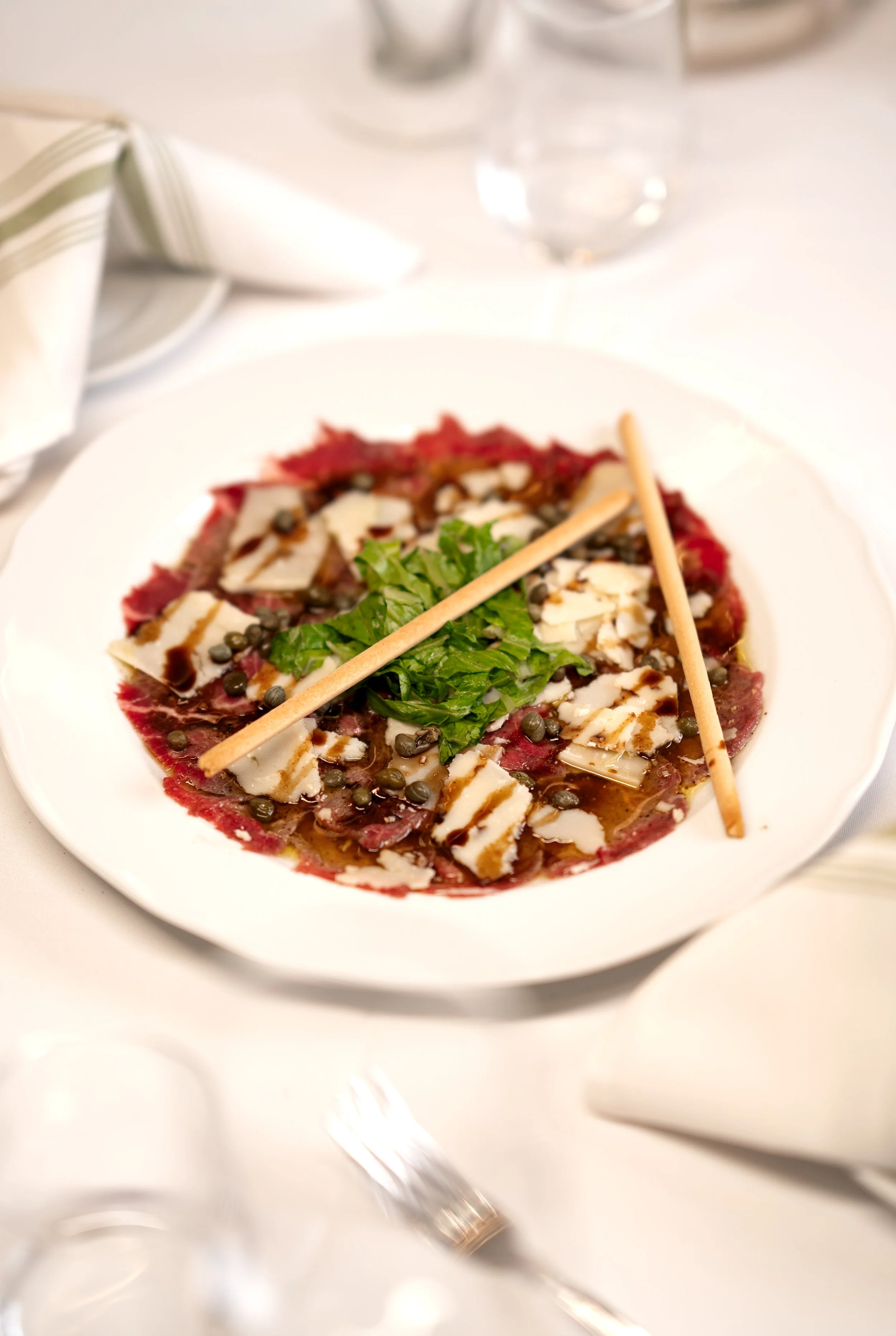 Thinly sliced prime beef tenderloin, finished with lemon, olive oil, and shaved Parmesan.